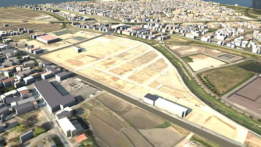 右画像は約3haの区画整理事業で、事業地中央には都市計画道路も整備する計画です。これにより交通の利便性について、飛躍的な向上が期待されています。